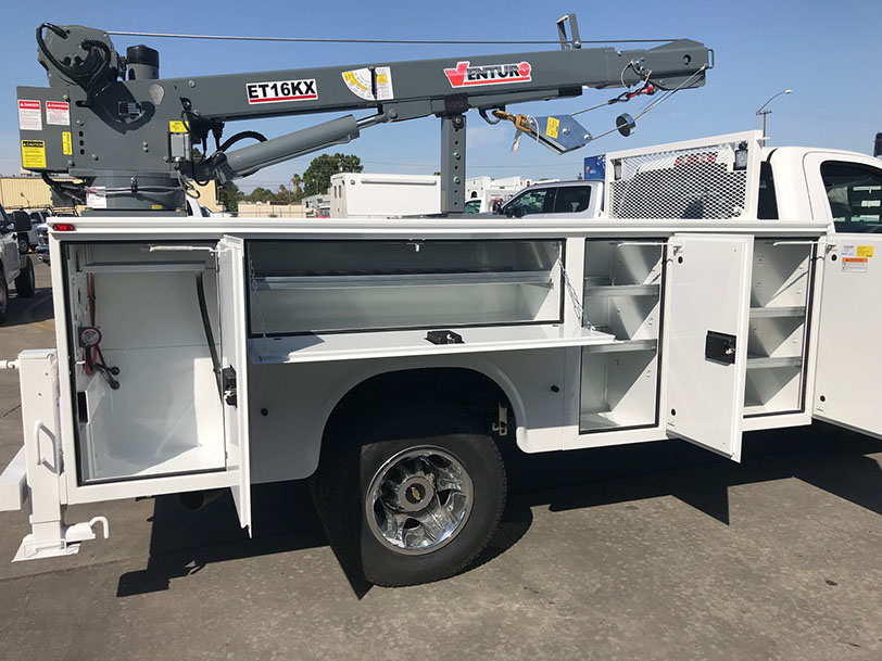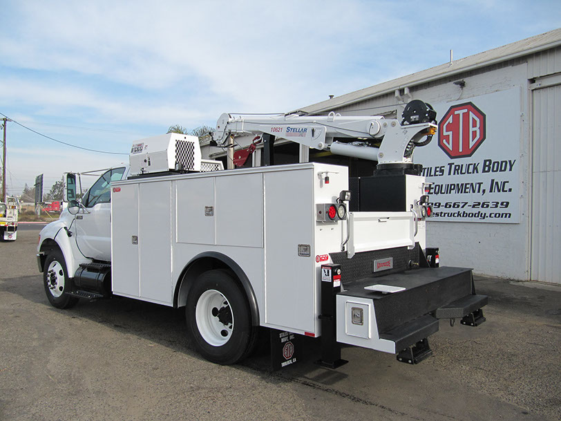 Stiles Truck Body has been installing, customizing, and aerial lift and crane equipment to service trucks for over thirty years. We can work closely with you to ascertain the specific needs of your job and install heavy duty crane equipment to suit your needs. Contact us today to discuss the many custom features and capabilities that our team of talented craftsmen can add to your crane service truck.