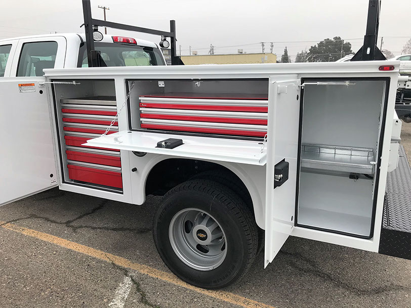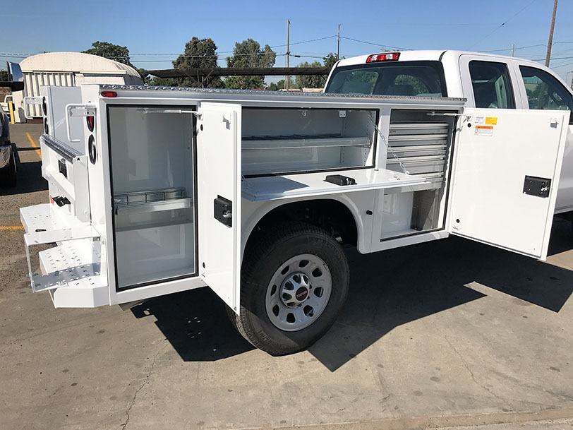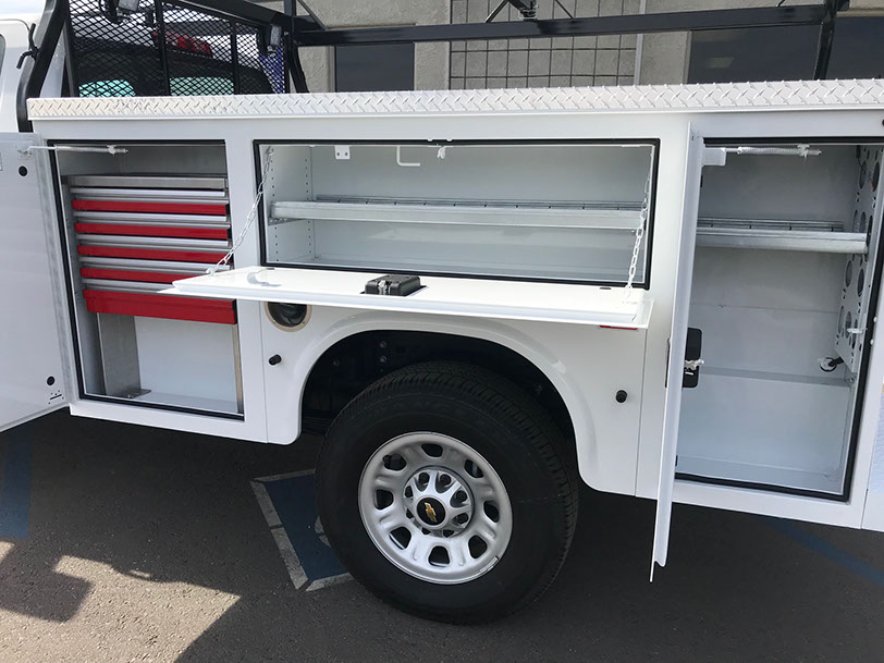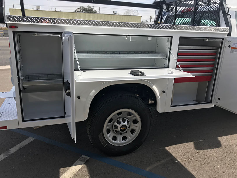 Enclosed Service Body trucks offer an organized storage capability and secure work platform that is popular with many professions and industries. Our team of talented craftsmen can add many custom features and capabilities to your enclosed service truck bed to meet your exacting needs and quality standards. Whether your needs include equipping a multi-vehicle work fleet or building a single stand alone unit, you can always count on Stiles Truck Body, Inc. to deliver the cost and quality to fit your budget.